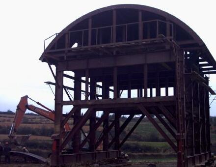 西安襯砌臺車主要用于中長隧道施工中,對施工進度、砼表面質(zhì)量要求較高。此類襯砌臺車設(shè)計為整體鋼模板、液壓油缸脫立模,施工中靠絲桿千斤支撐,電動減速機自動行走或油缸步進式自動行走,全部采用砼輸送泵車灌注。大部分襯砌臺車為該類臺車。設(shè)計該類襯砌臺車時,在滿足通過凈空要求的情況下,應(yīng)考慮門架內(nèi)側(cè)斜支撐下部安裝位置,盡可能靠近立柱下部,使之受力最好。門架橫梁應(yīng)足夠高,常規(guī)鐵路隧道不小于400mm,公路隧道不小于5500mm。模板端面與門架間的調(diào)整最小距離不小于250mm,否則將造成前后襯砌段搭接困難。